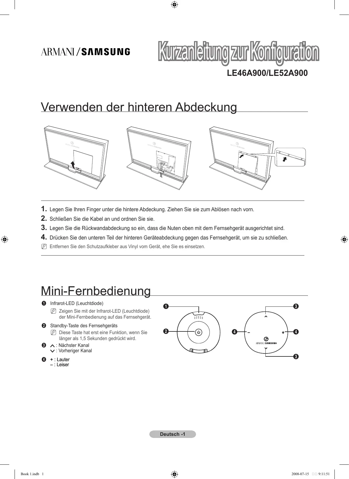 4 + : Lauter Leiser Deutsch - Book 1.indb 1 2008-07-15 9:11:51 Batterien in die Mini-Fernbedienung einsetzen