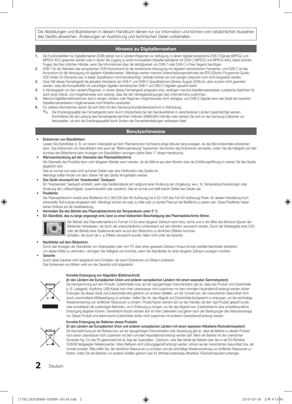 2010-03-26 오후 4:15:39 Die Abbildungen und Illustrationen in diesem Handbuch dienen nur zur Information und können vom tatsächlichen Aussehen des Geräts abweichen. Änderungen an Ausführung und technischen Daten vorbehalten. Hinweis zu Digitalfernsehen