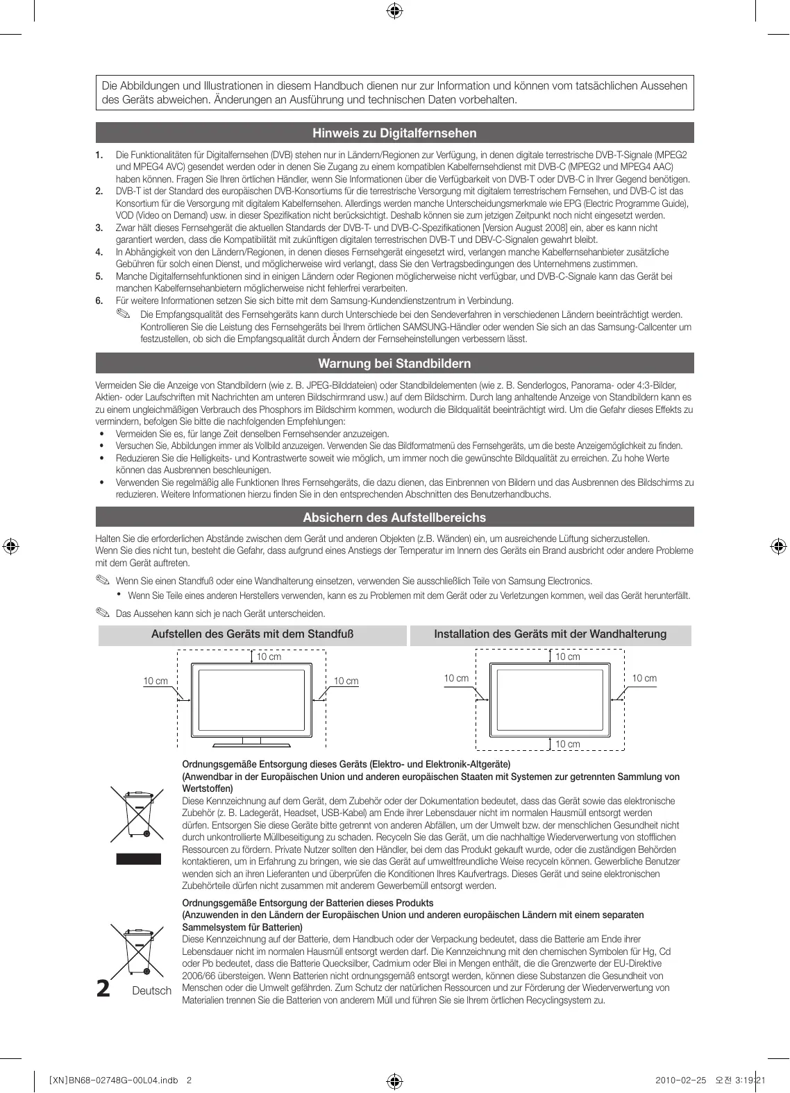 English [XN]BN68-02748G-00L04.indb 54 2010-02-25 오전 3:19:20 This page is intentionally left blank. [XN]BN68-02748G-00L04.indb 55 2010-02-25 오전 3:19:20 Die Abbildungen und Illustrationen in diesem Handbuch dienen nur zur Information und können vom tatsächlichen Aussehen des Geräts abweichen. Änderungen an Ausführung und technischen Daten vorbehalten. Hinweis zu Digitalfernsehen