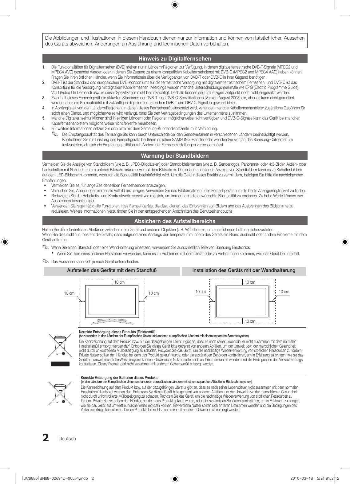 2010-03-18 오전 9:52:11 Die Abbildungen und Illustrationen in diesem Handbuch dienen nur zur Information und können vom tatsächlichen Aussehen des Geräts abweichen. Änderungen an Ausführung und technischen Daten vorbehalten. Hinweis zu Digitalfernsehen