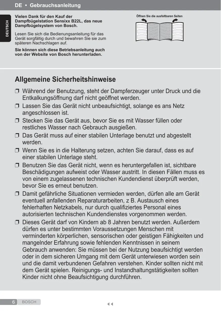 SENSIXX B22L - Bügeleisen BOSCH - Kostenlose Bedienungsanleitung