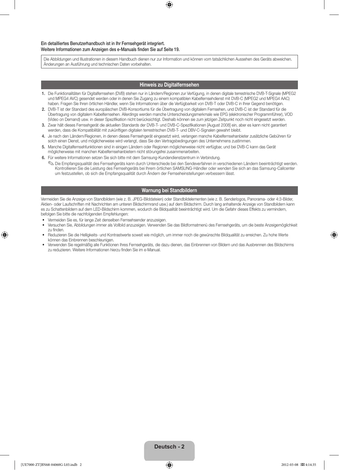 - • Dieses Gerät kann in allen Ländern in der EU verwendet werden. Lizenz Deutsch - 24 [UE7000-ZT]BN68-04060G-L03.indb 24 2012-03-08 4:14:52