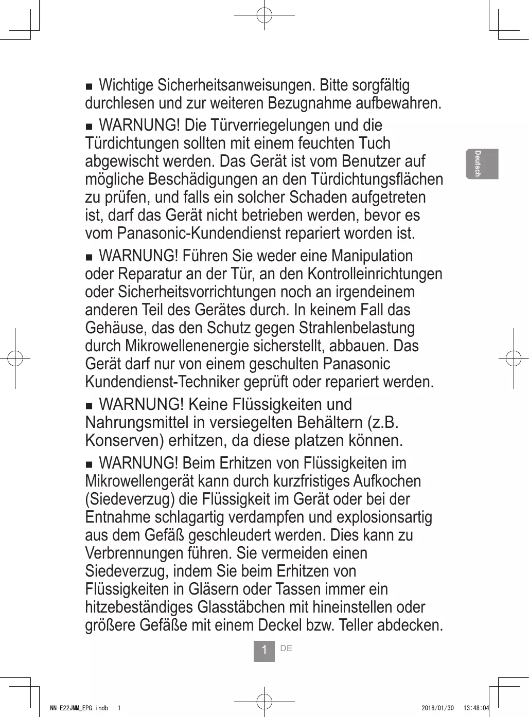 Laden Sie die Anleitung für Ihr Mikrowellen kostenlos im PDF-Format! Finden Sie Ihr Handbuch NN-E20JWMEPG - PANASONIC und nehmen Sie Ihr elektronisches Gerät wieder in die Hand. Auf dieser Seite sind alle Dokumente veröffentlicht, die für die Verwendung Ihres Geräts notwendig sind. NN-E20JWMEPG von der Marke PANASONIC.