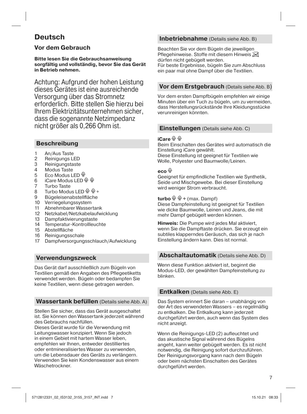 Finden Sie kostenlos die Bedienungsanleitung des Geräts IS3157BL DARRY BRAUN als PDF.