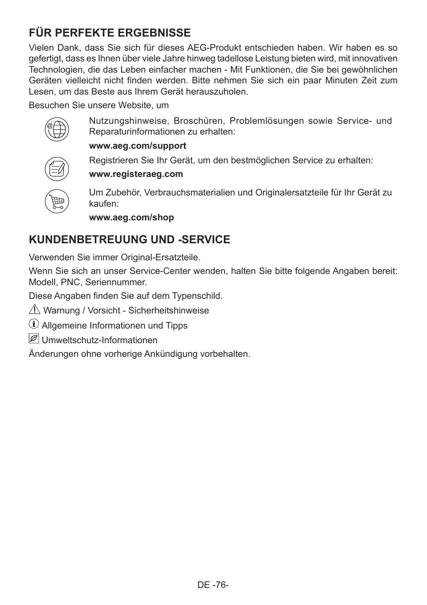Lorsque vous contactez notre centre de services agréé, assurez-vous que vous disposez des données suivantes : Modèle, code du produit, numéro de série. Ces informations se trouvent sur la plaque signalétique. Avertissement / Attention - Informations sur la sécurité Informations générales et conseils Informations environnementales Sous réserve de modifications sans préavis.