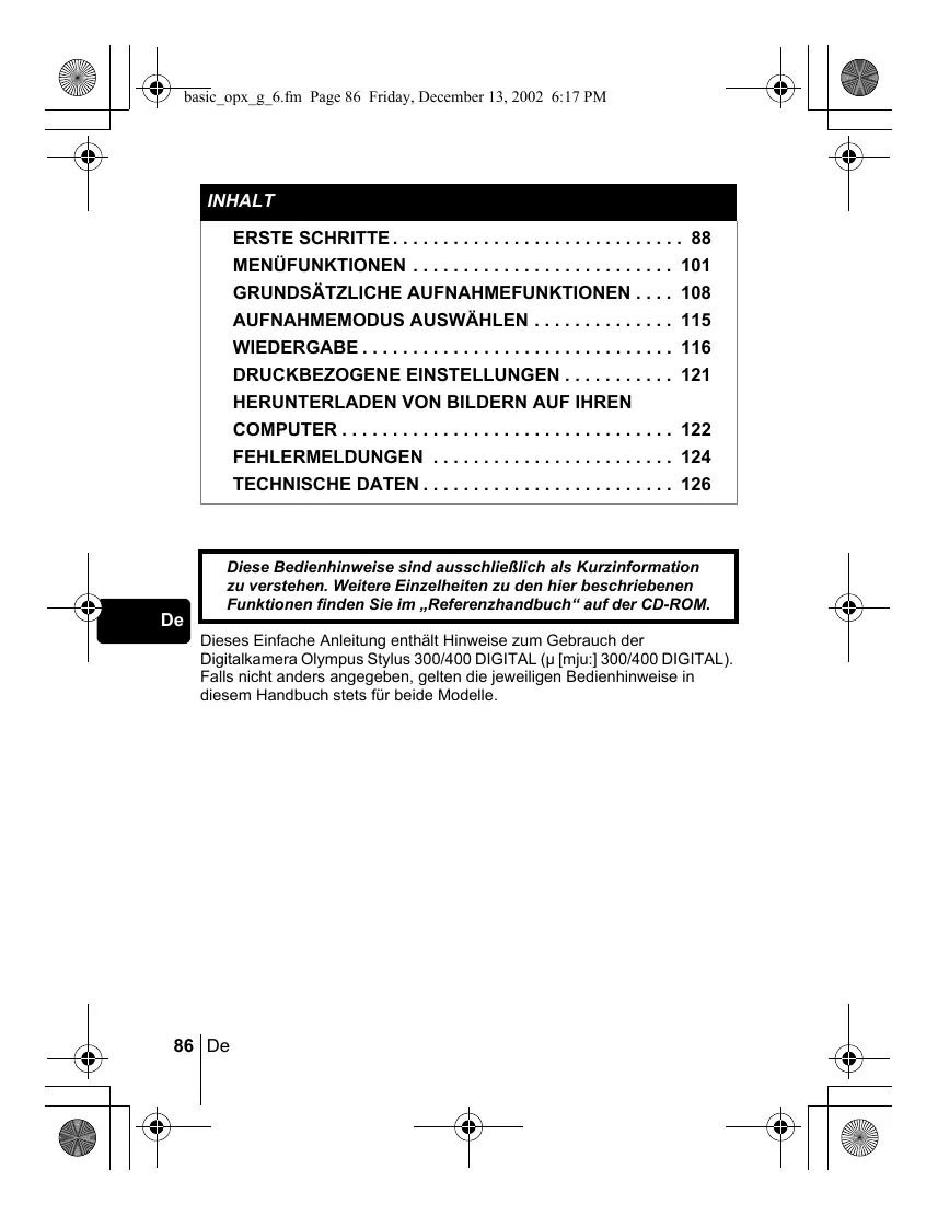 BEDIENUNGSANLEITUNG Stylus 300/400 OLYMPUS