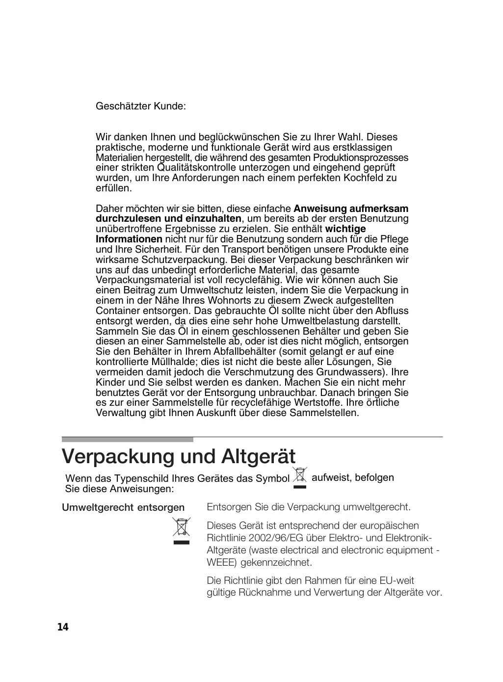 Wir danken Ihnen und beträckwūnschen Sie zu ihrer Wahl. Diese praktische, moderne und funktionale Gerät wird aus erstklassigen Materialien hergestellt, die während des gesamten Produktionsprozesses einer strikten Qualitätkontrolle unterzogen und eingehend geprüft wurden, um ihre Anforderungen nach einem perfekten Kochfeld zu erfüllen.