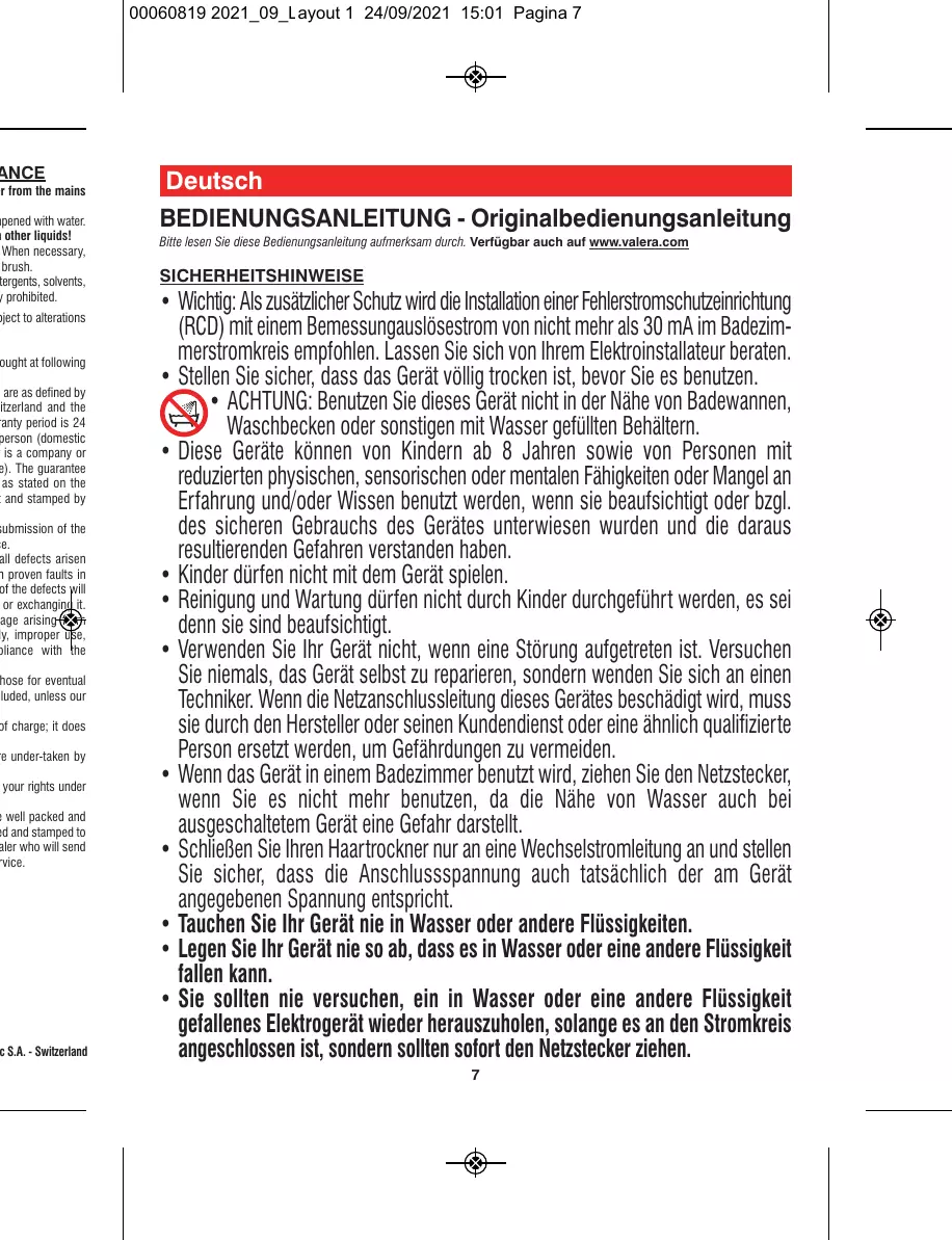 36 DaRryVALERAPISTOLET SECHANTPERFORMER LIGHT2000 - Haartrockner DARTY - Kostenlose Bedienungsanleitung