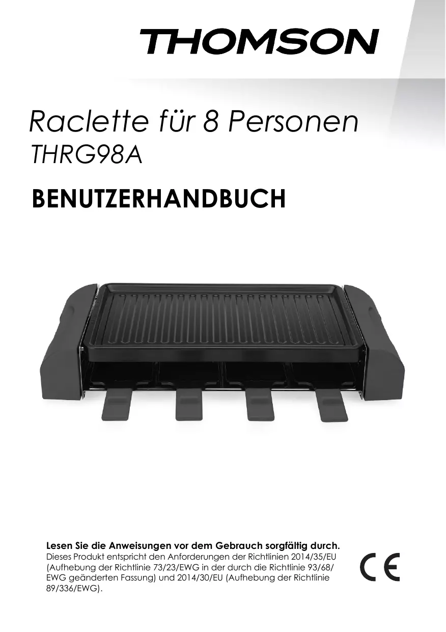 Laden Sie die Anleitung für Ihr Elektrisches Kochgerät kostenlos im PDF-Format! Finden Sie Ihr Handbuch THRG98A - THOMSON und nehmen Sie Ihr elektronisches Gerät wieder in die Hand. Auf dieser Seite sind alle Dokumente veröffentlicht, die für die Verwendung Ihres Geräts notwendig sind. THRG98A von der Marke THOMSON.