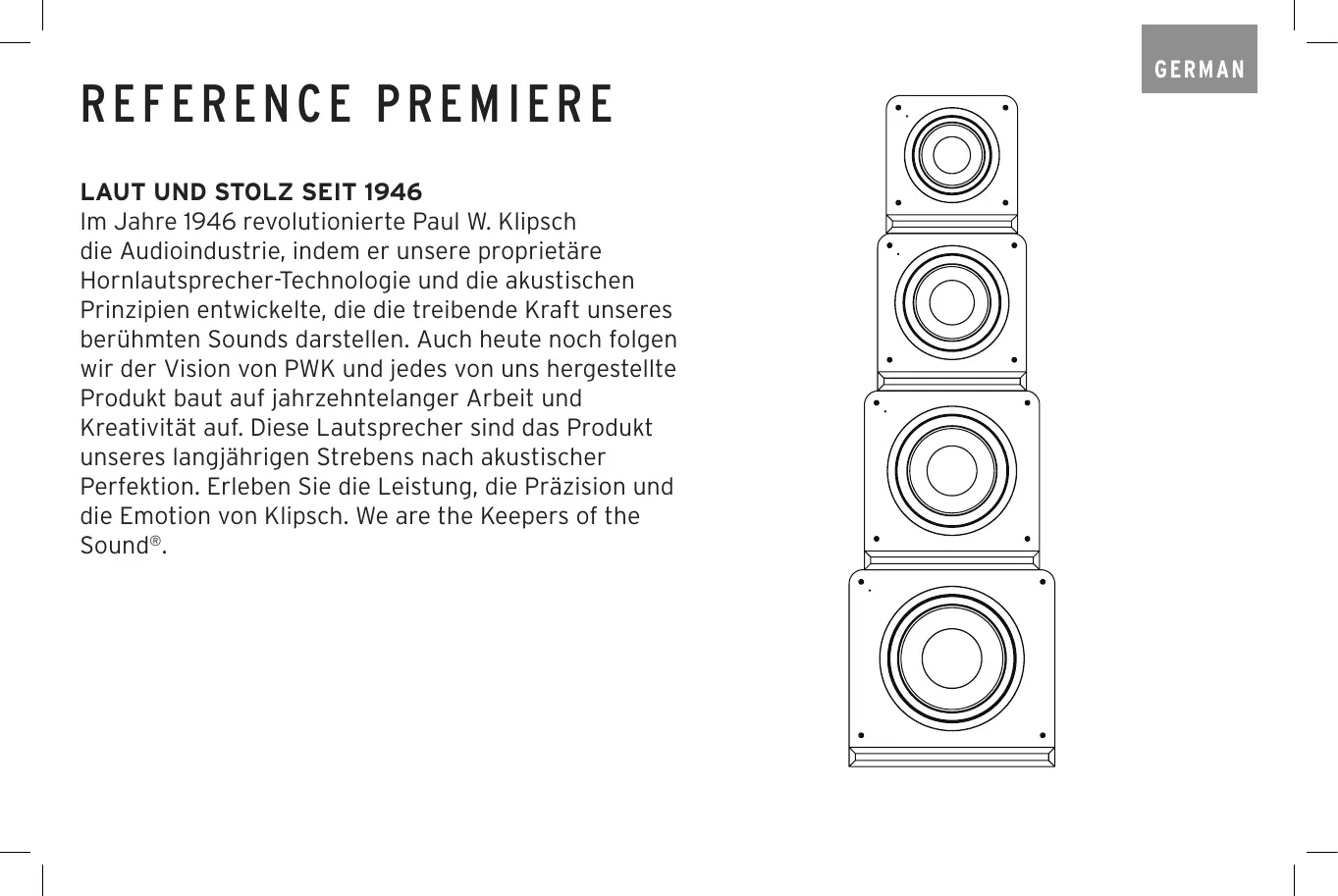 Laden Sie die Anleitung für Ihr Homecinema kostenlos im PDF-Format! Finden Sie Ihr Handbuch RP-1400SW - KLIPSCH und nehmen Sie Ihr elektronisches Gerät wieder in die Hand. Auf dieser Seite sind alle Dokumente veröffentlicht, die für die Verwendung Ihres Geräts notwendig sind. RP-1400SW von der Marke KLIPSCH.