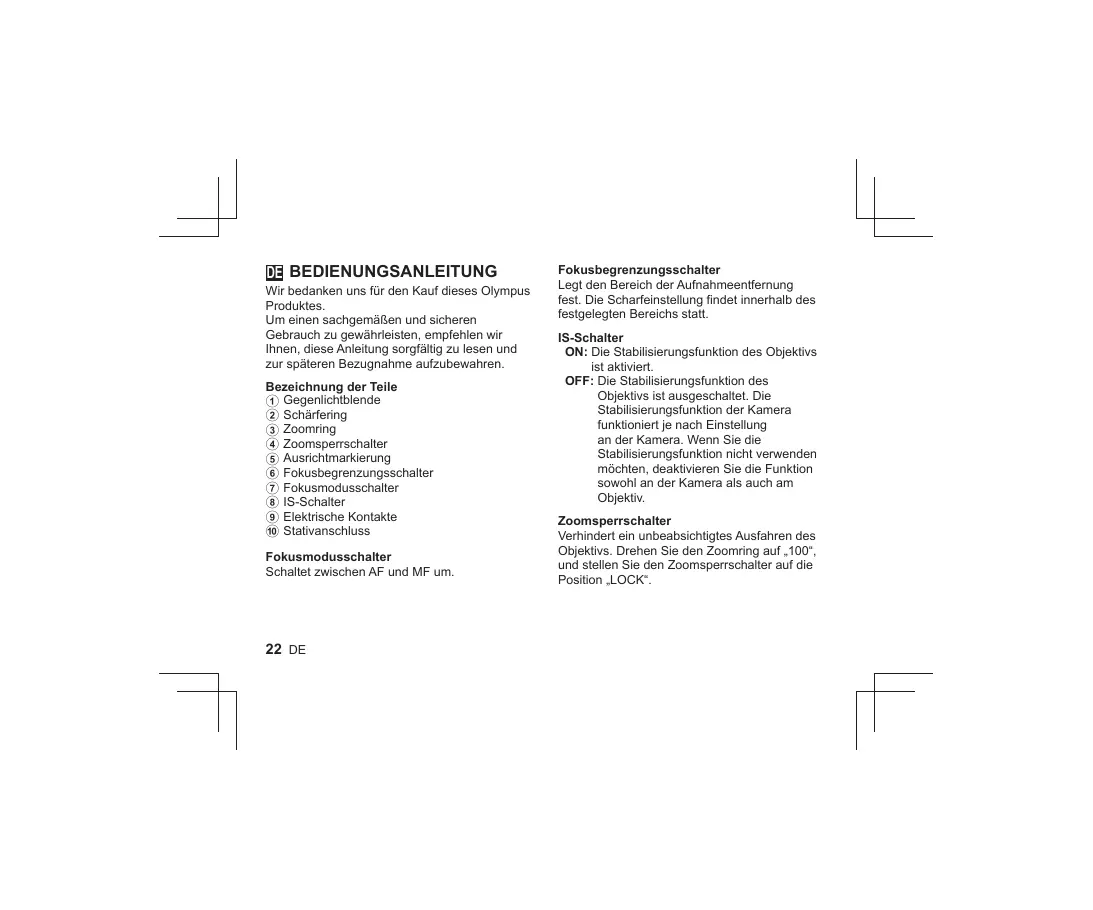 BEDIENUNGSANLEITUNG M.ZUIKO DIGITAL ED 100-400MM F5.0-6.3 IS OLYMPUS