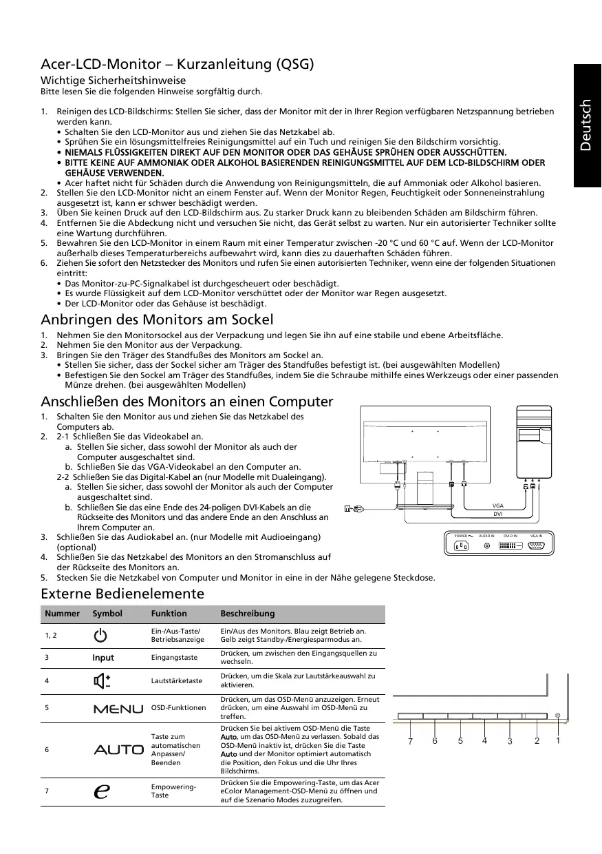 Laden Sie die Anleitung für Ihr Computerbildschirm kostenlos im PDF-Format! Finden Sie Ihr Handbuch VA190HQ - ACER und nehmen Sie Ihr elektronisches Gerät wieder in die Hand. Auf dieser Seite sind alle Dokumente veröffentlicht, die für die Verwendung Ihres Geräts notwendig sind. VA190HQ von der Marke ACER.
