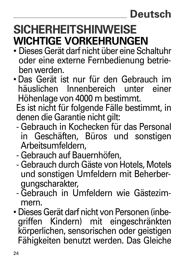à un usage domestique et à l’intérieur de la maison et à une altitude inférieure à 4000 m. Il n’a pas été conçu pour être utilisé dans les cas suivants qui ne sont pas couverts par la garantie: - Dans des coins de cuisines réservés au personnel dans des magasins, bureaux et autres environnements professionnels, - Dans des fermes, - Par les clients des hôtels, motels et autres environnements à caractère résidentiel, - Dans des environnements de type chambres d’hôtes. 14