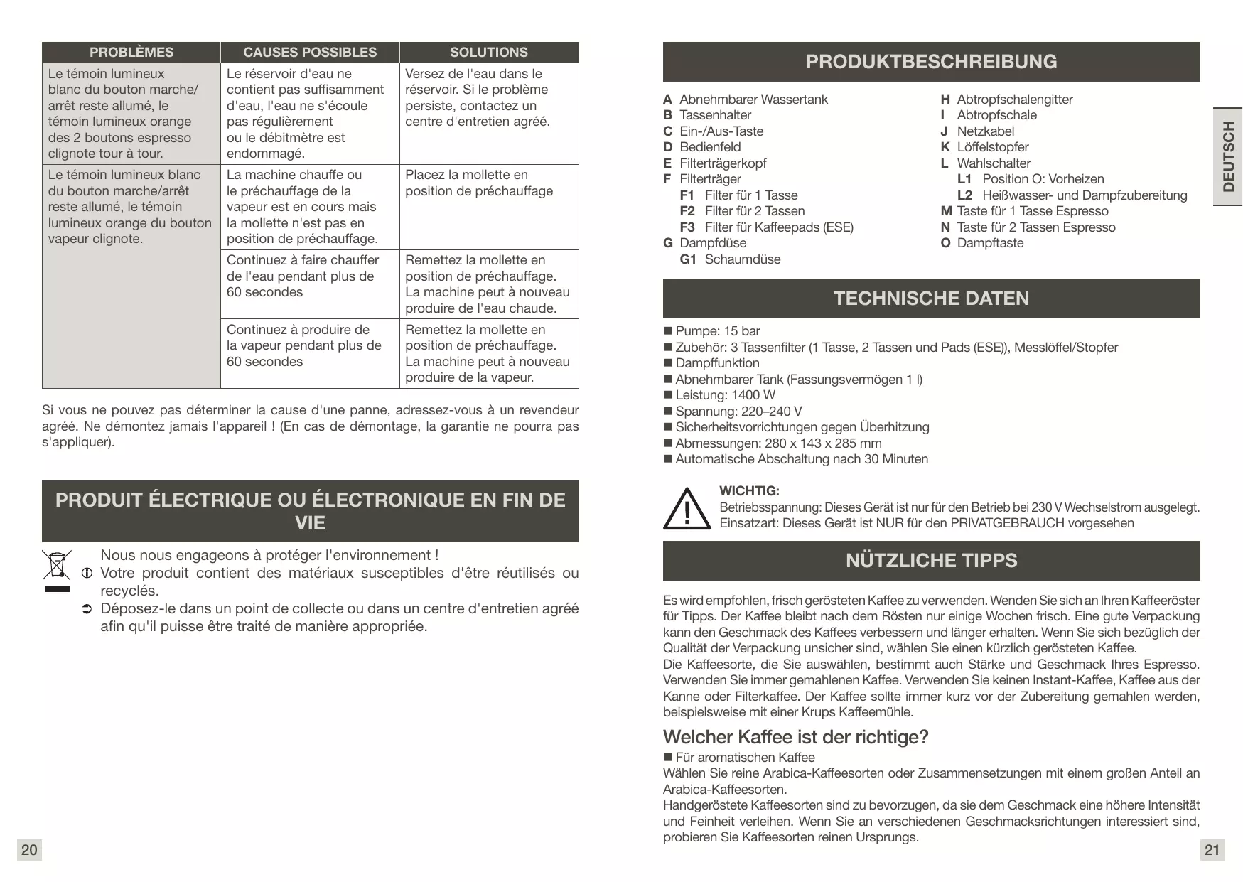 XP442C11 - Kaffeemaschine KRUPS - Kostenlose Bedienungsanleitung