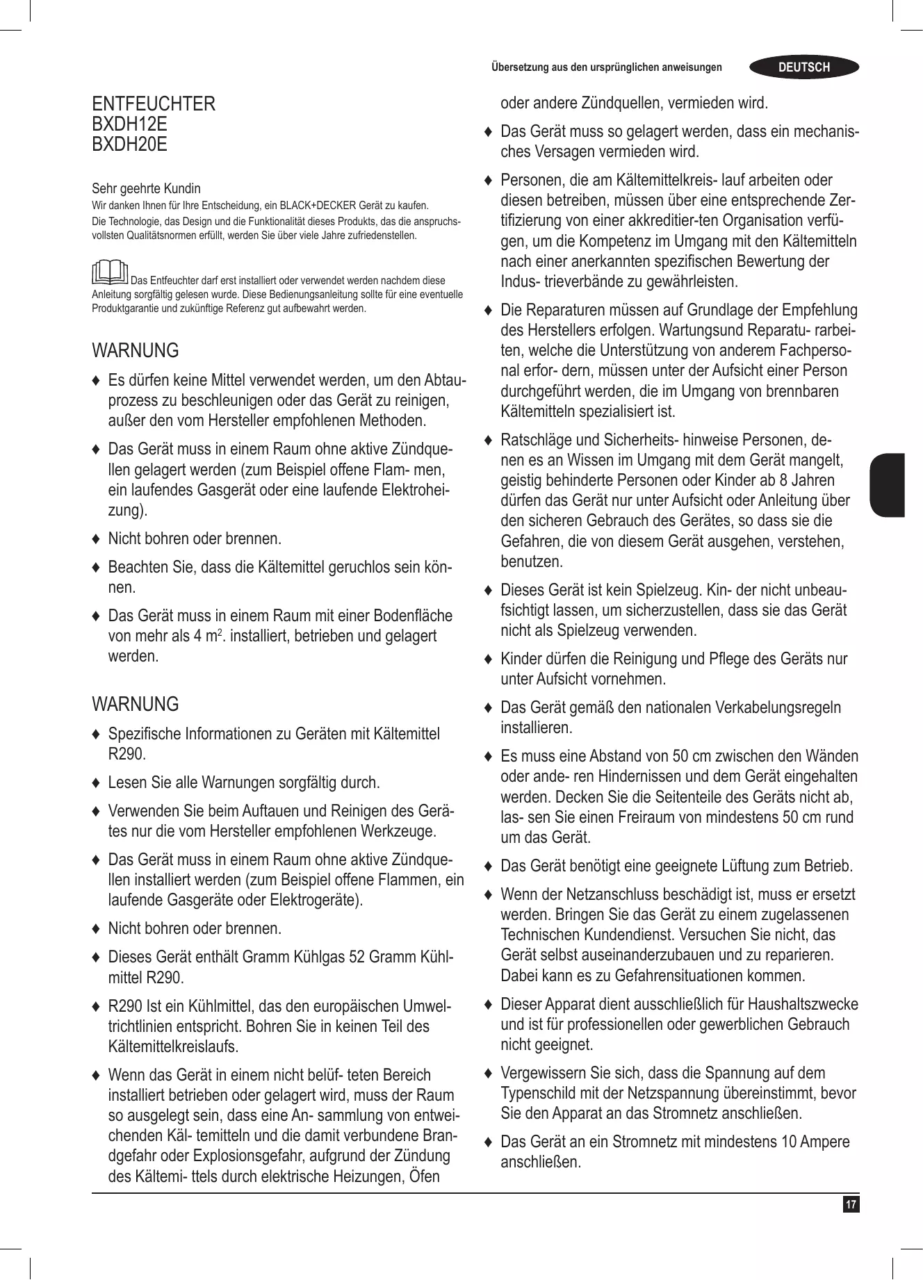 ENTFEUCHTER BXDH12E BXDH20E Sehr geehrte Kundin