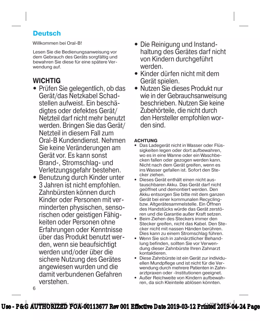 Finden Sie kostenlos die Bedienungsanleitung des Geräts SMART 6 6600 SPECIALEDITION K ORAL-B als PDF.