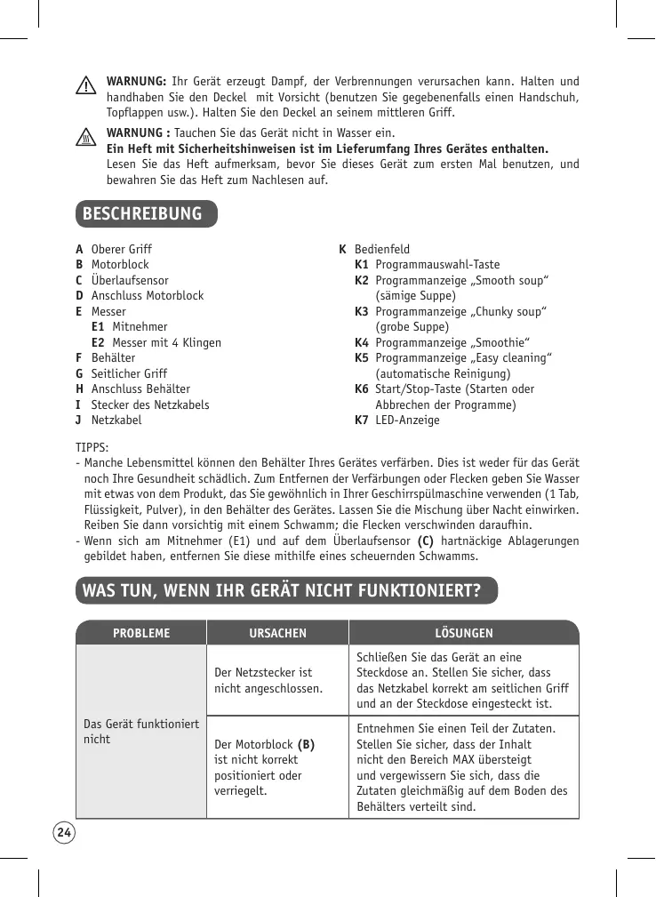 L’appareil à soupe n’est pas approprié pour faire chauffer du lait.