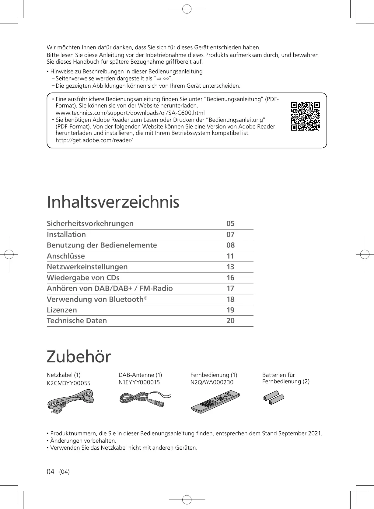 - Eine ausfuhrlichere Bedienungsanleitung finds Sie unter "Bedienungsanleitung" (PDF-Format). Sie können sie von der Website herunterlagen. www.technics.com/support/downloads/oi/SA-C600.html