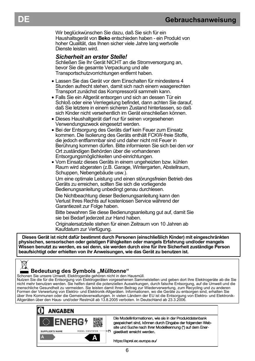 Finden Sie kostenlos die Bedienungsanleitung des Geräts RDSA240K40WN BEKO als PDF.