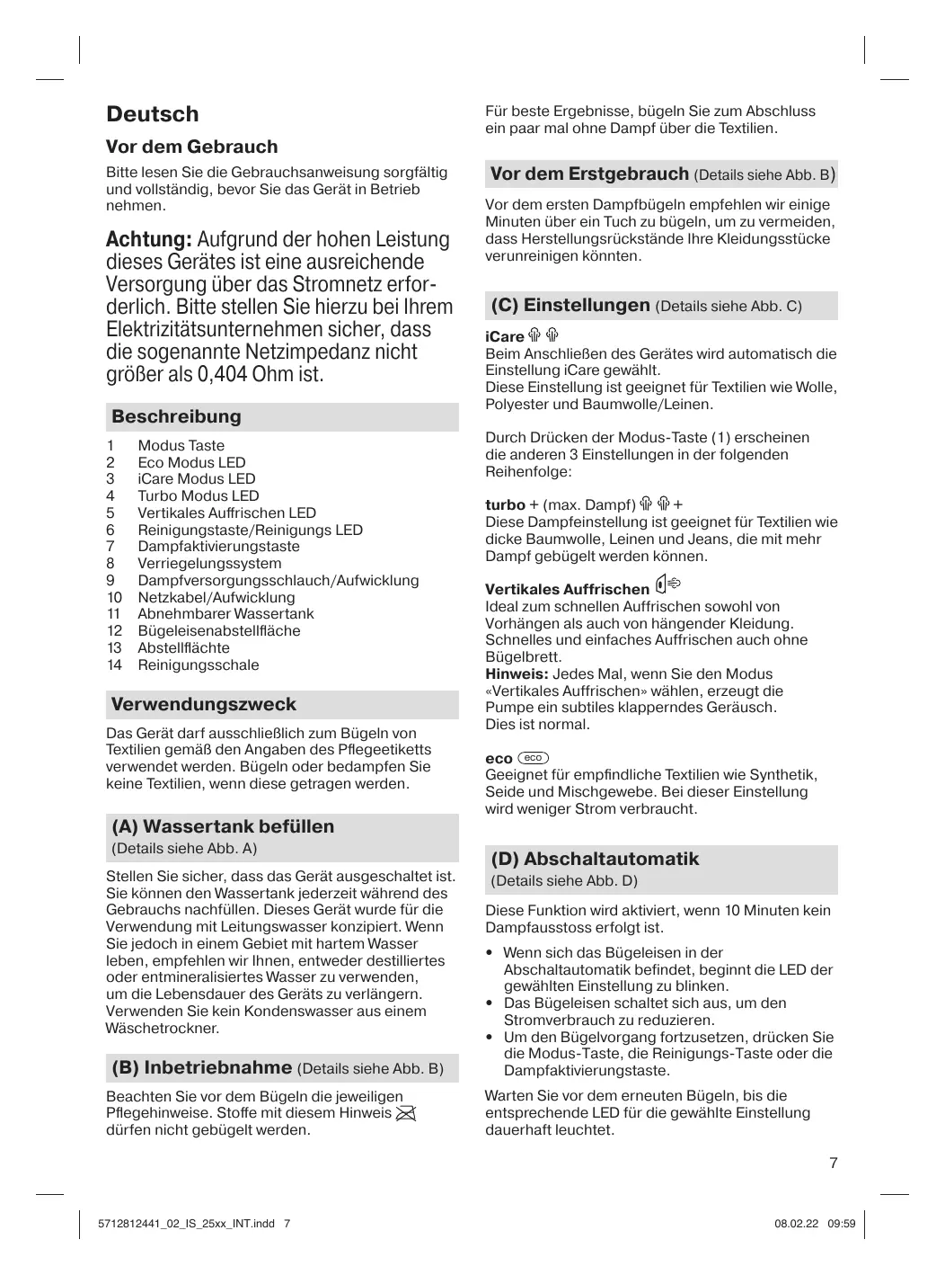 Finden Sie kostenlos die Bedienungsanleitung des Geräts IS2565BLB DARRY BRAUN als PDF.