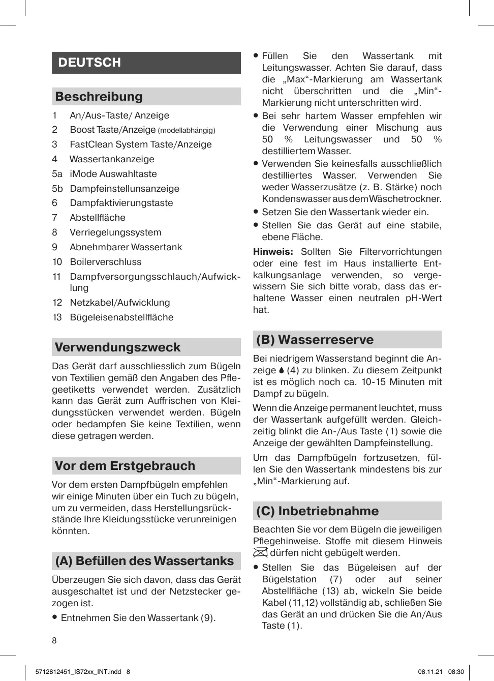 Finden Sie kostenlos die Bedienungsanleitung des Geräts IS7262GY BRAUN als PDF.