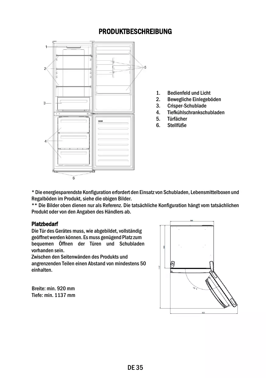 Gardez une distance d'au moins 50 mm entre les parois latérales du produit et les pièces adjacentes. Largeur : min. 920 mm Profondeur : min. 1137 mm