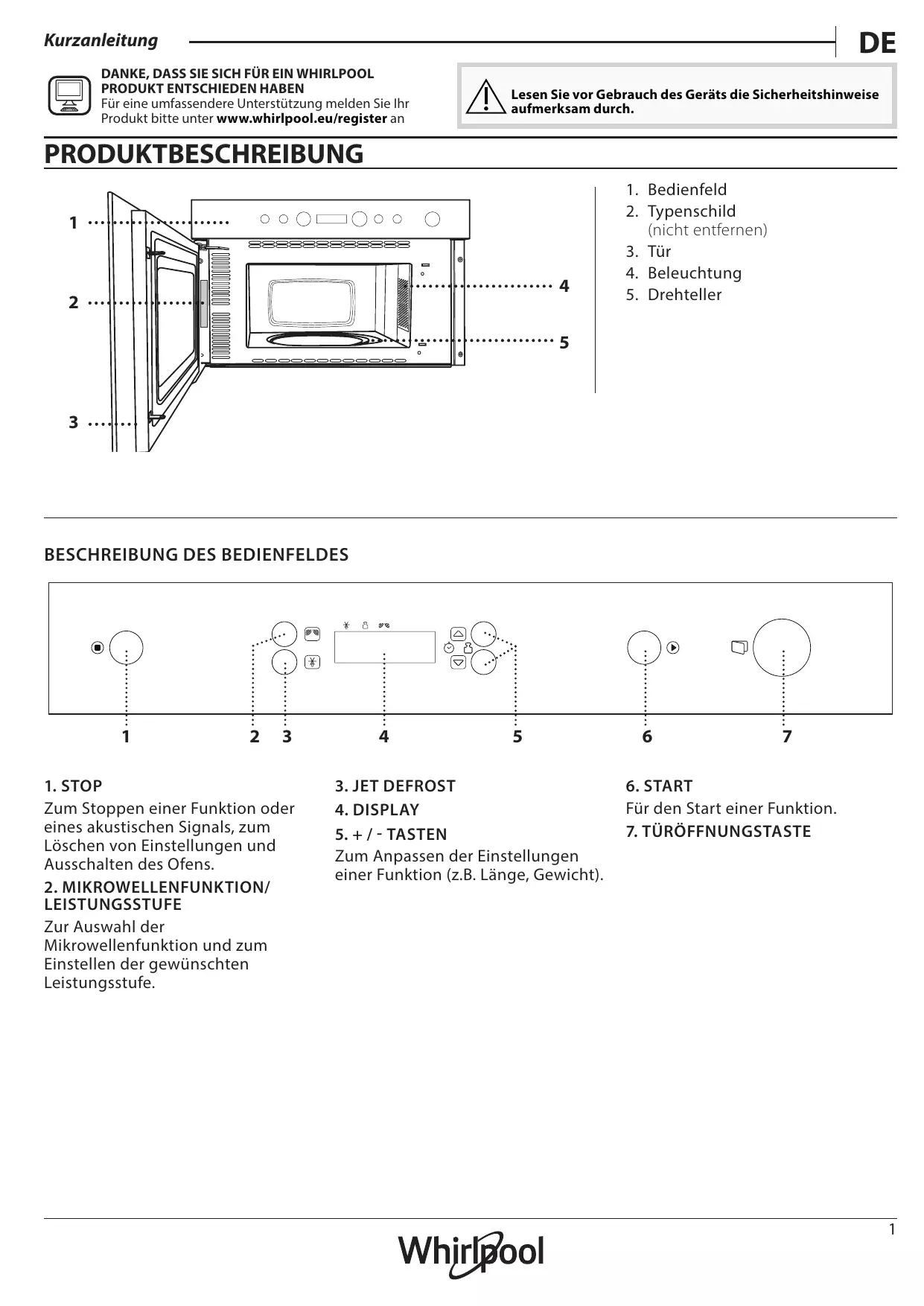 XXXXXXXXXXXX XXXXXXXXXXXX XXX/XXX DE Kurzanleitung DANKE, DASS SIE SICH FÜR EIN WHIRLPOOL PRODUKT ENTSCHIEDEN HABEN Für eine umfassendere Unterstützung melden Sie Ihr Produkt bitte unter www.whirlpool.eu/register an