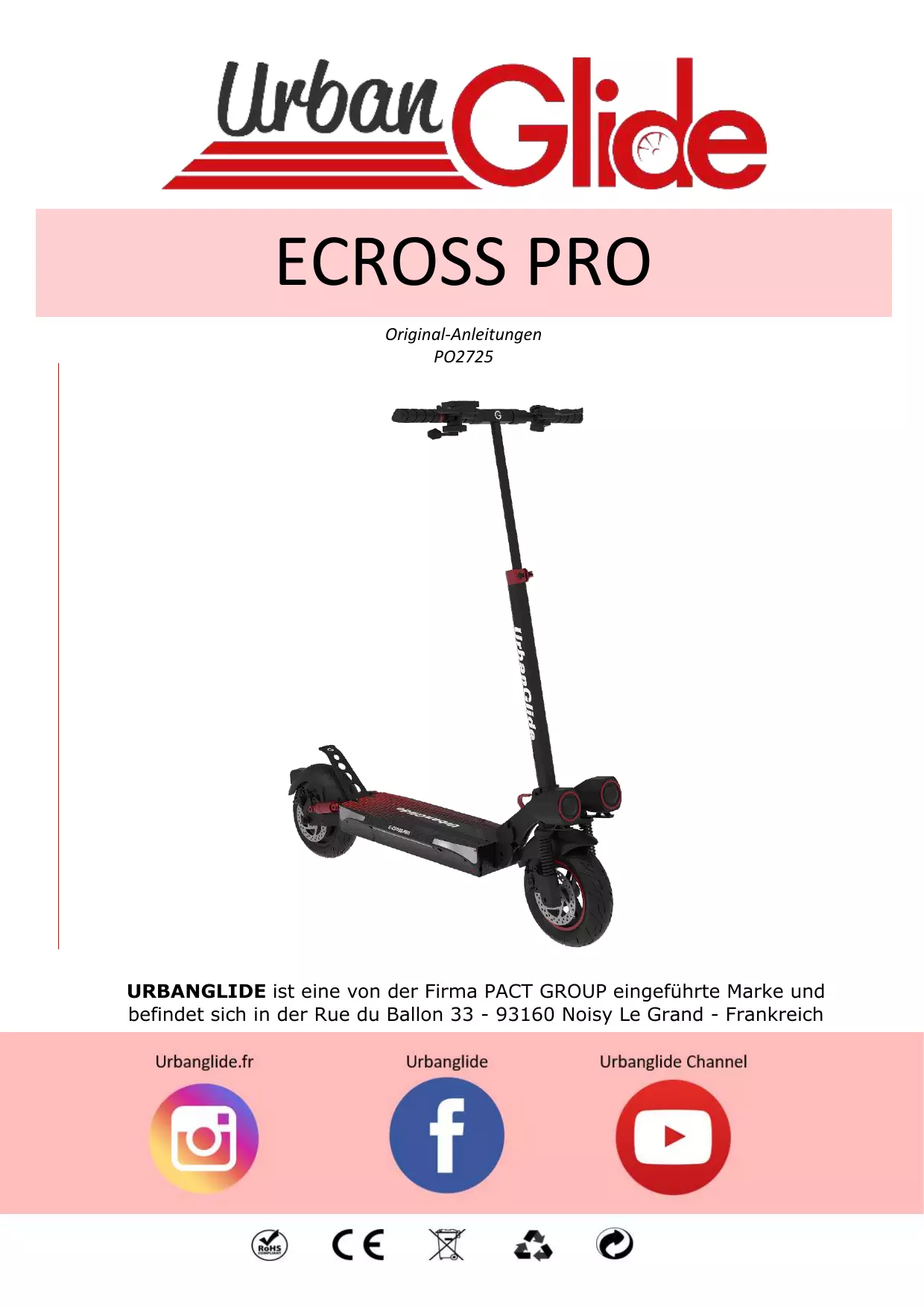 CrossPro13AH - Elektroroller URBANGLIDE - Kostenlose Bedienungsanleitung