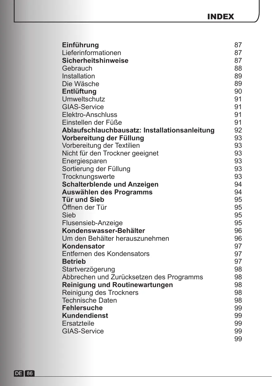- Diese Maschine dient als Haushaltsgerät ausschließlich zum Trocknen von Haushaltstextilien und Kleidungsstücken.