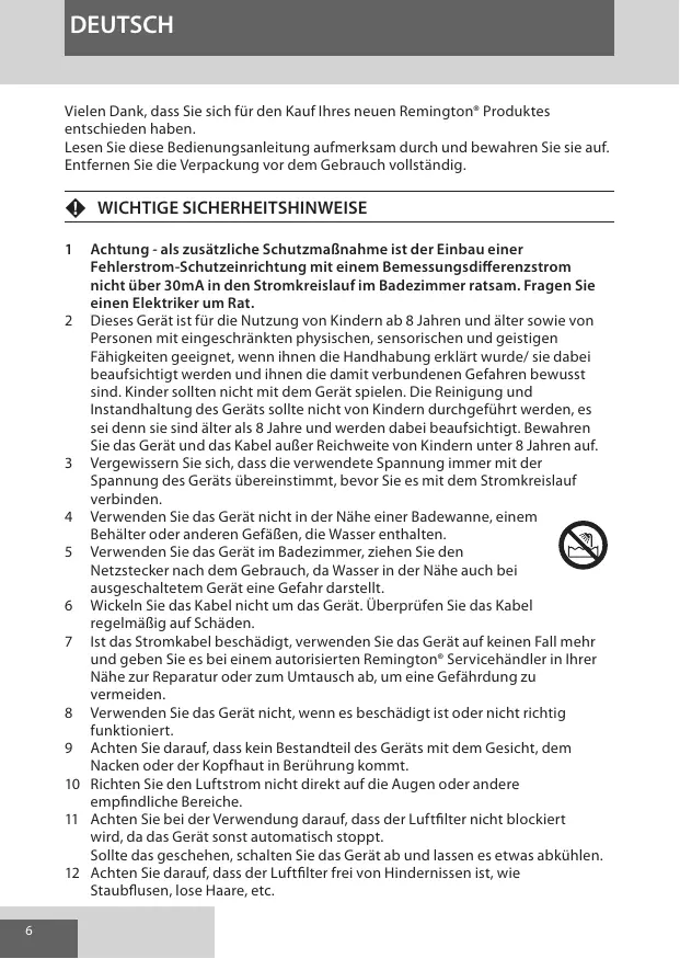 Laden Sie die Anleitung für Ihr Haartrockner kostenlos im PDF-Format! Finden Sie Ihr Handbuch D5222DSC - REMINGTON und nehmen Sie Ihr elektronisches Gerät wieder in die Hand. Auf dieser Seite sind alle Dokumente veröffentlicht, die für die Verwendung Ihres Geräts notwendig sind. D5222DSC von der Marke REMINGTON.