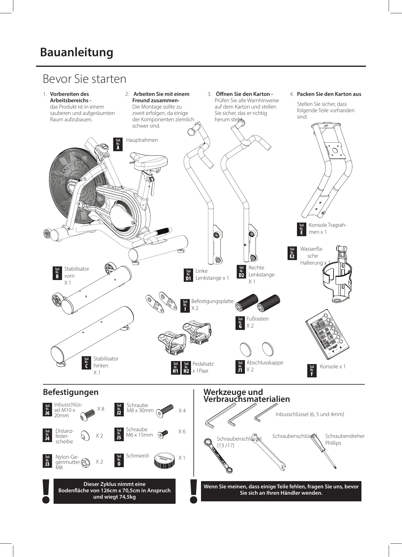 O Dieser Zyklus nimmt eine Bodenfläche von 126cm x 70,5cm in Anspruch und wiegt 74,5kg