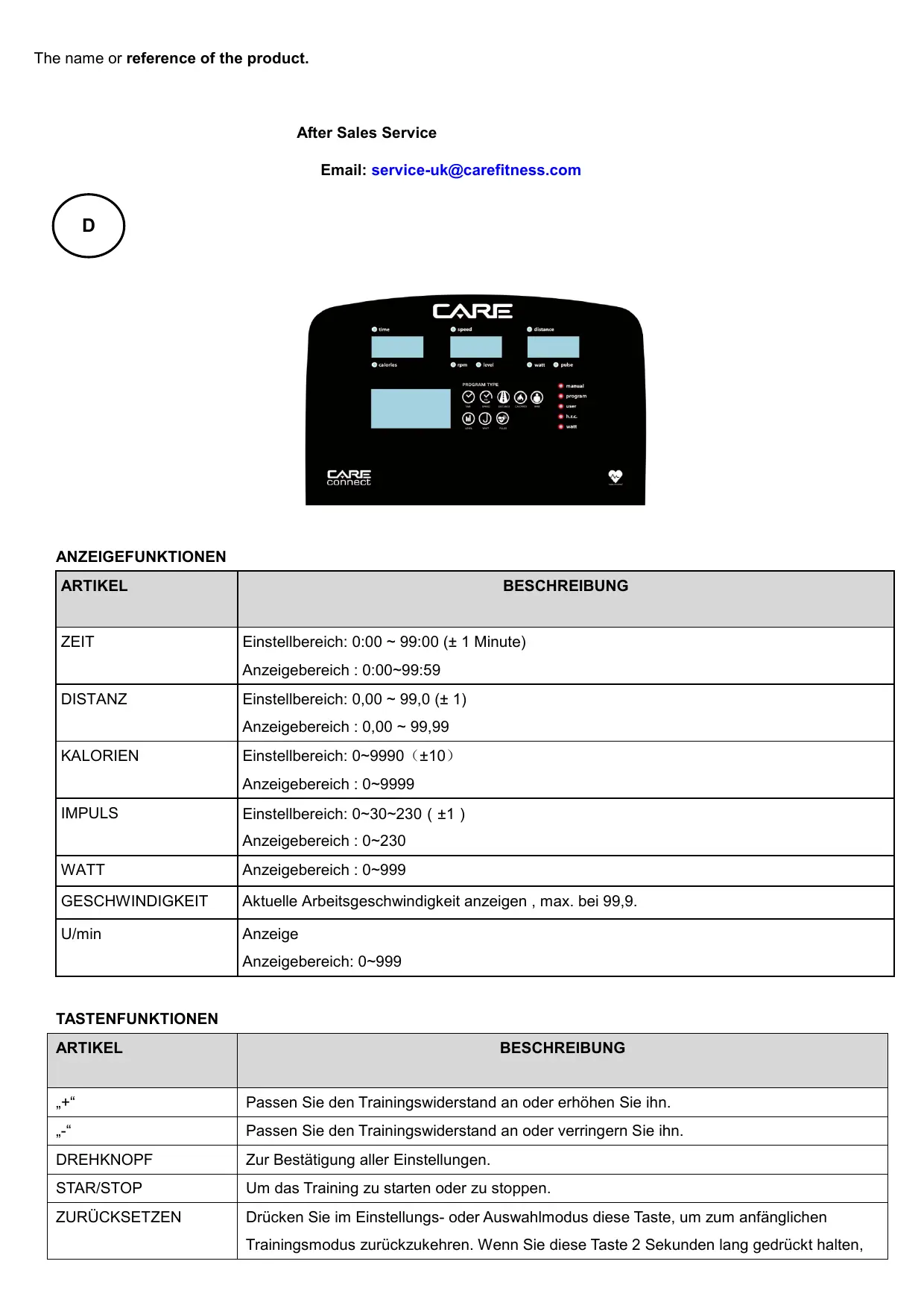 BEDIENUNGSANLEITUNG PERFORMER LED auto-alimenté - CARE - ergomètre connecté CARE FITNESS