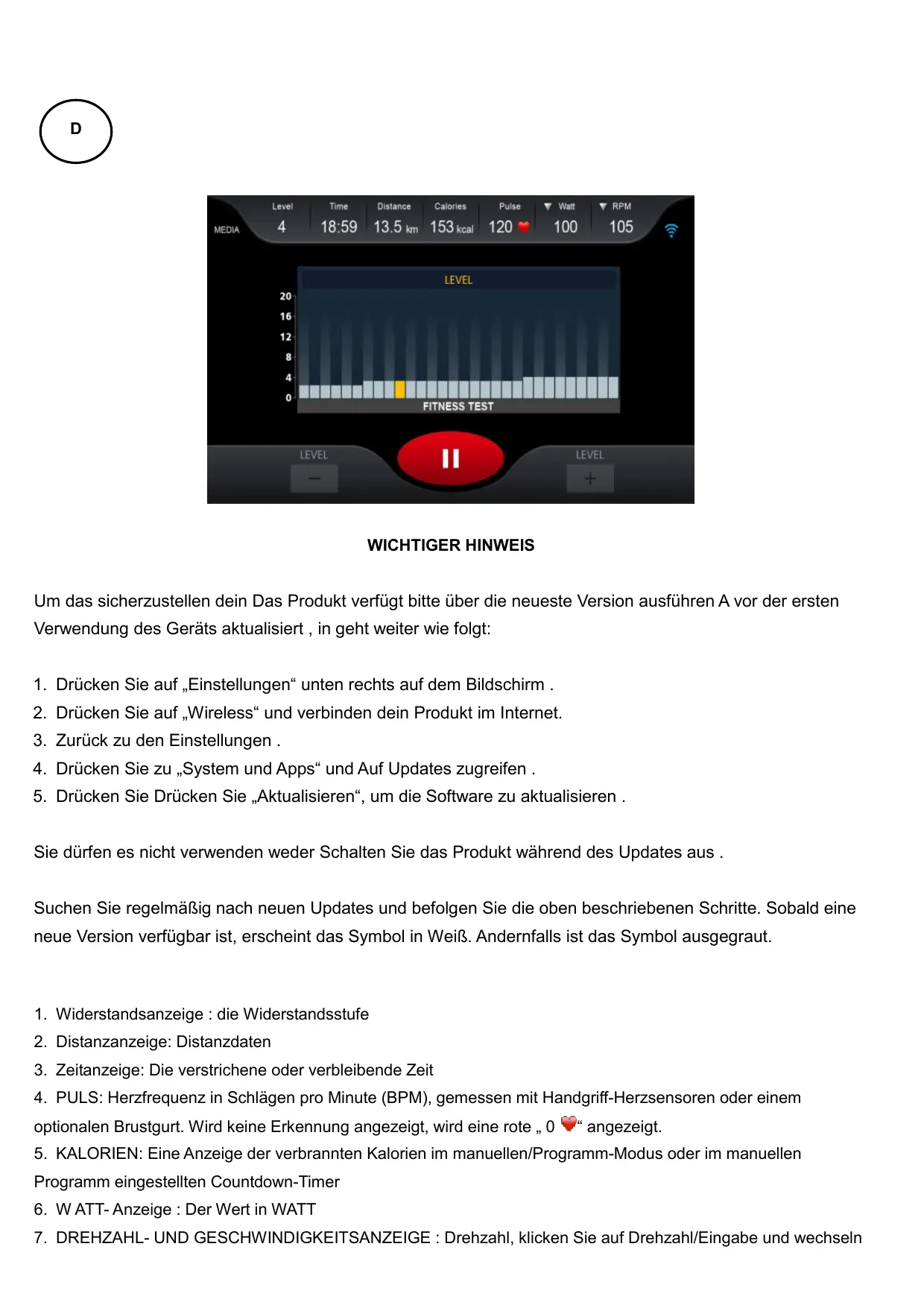BEDIENUNGSANLEITUNG ROADSTER TFT auto-alimenté - CARE - ergomètre connecté CARE FITNESS