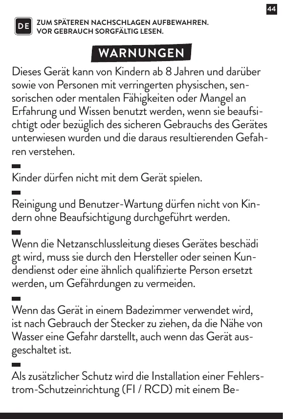 ÉLECTRIQUE N'immergez pas l'appareil et sa fiche dans Peau ou tout autre liquide. Ne manipulez pas l'appareil avec les mains humides ou mouillées.