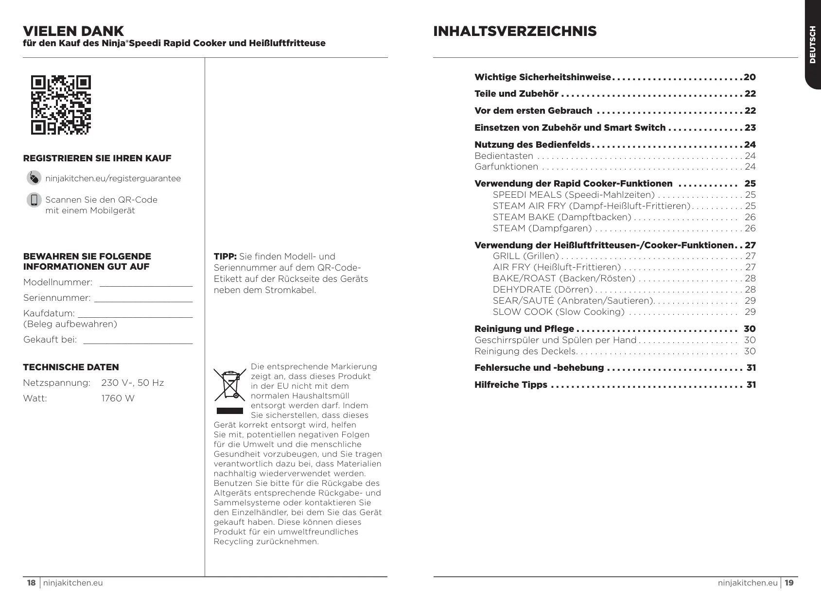 Laden Sie die Anleitung für Ihr Kochroboter kostenlos im PDF-Format! Finden Sie Ihr Handbuch ON400EU Speedi Rapid Cooker & Air fryer - NINJA und nehmen Sie Ihr elektronisches Gerät wieder in die Hand. Auf dieser Seite sind alle Dokumente veröffentlicht, die für die Verwendung Ihres Geräts notwendig sind. ON400EU Speedi Rapid Cooker & Air fryer von der Marke NINJA.
