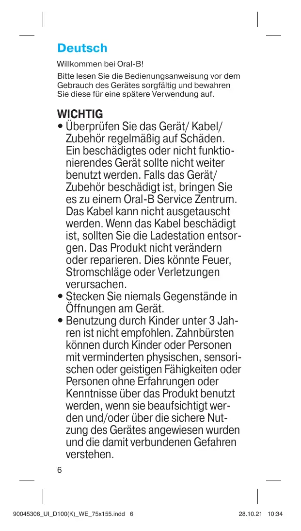 Finden Sie kostenlos die Bedienungsanleitung des Geräts Vitality 100cross ORAL-B als PDF.