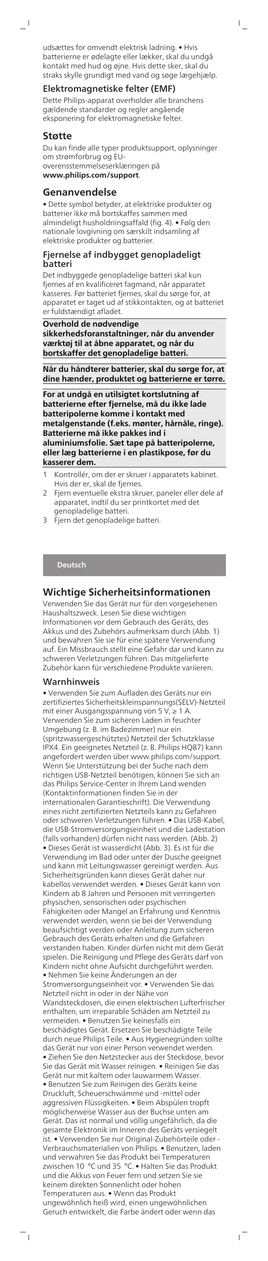 étanche (Fig. 3). Il peut être utilisé dans la baignoire et sous la douche, et peut être nettoyé sous l'eau du robinet. Pour des raisons de sécurité, l'appareil est uniquement prévu pour une utilisation sans fil. + Cet appareil peut être utilisé par des enfants âgés de