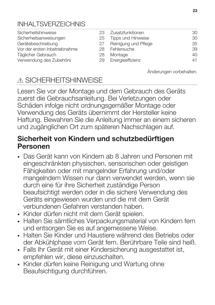 | Sicherheitshinweise | 23 | Zusatzfunktionen | 30 |