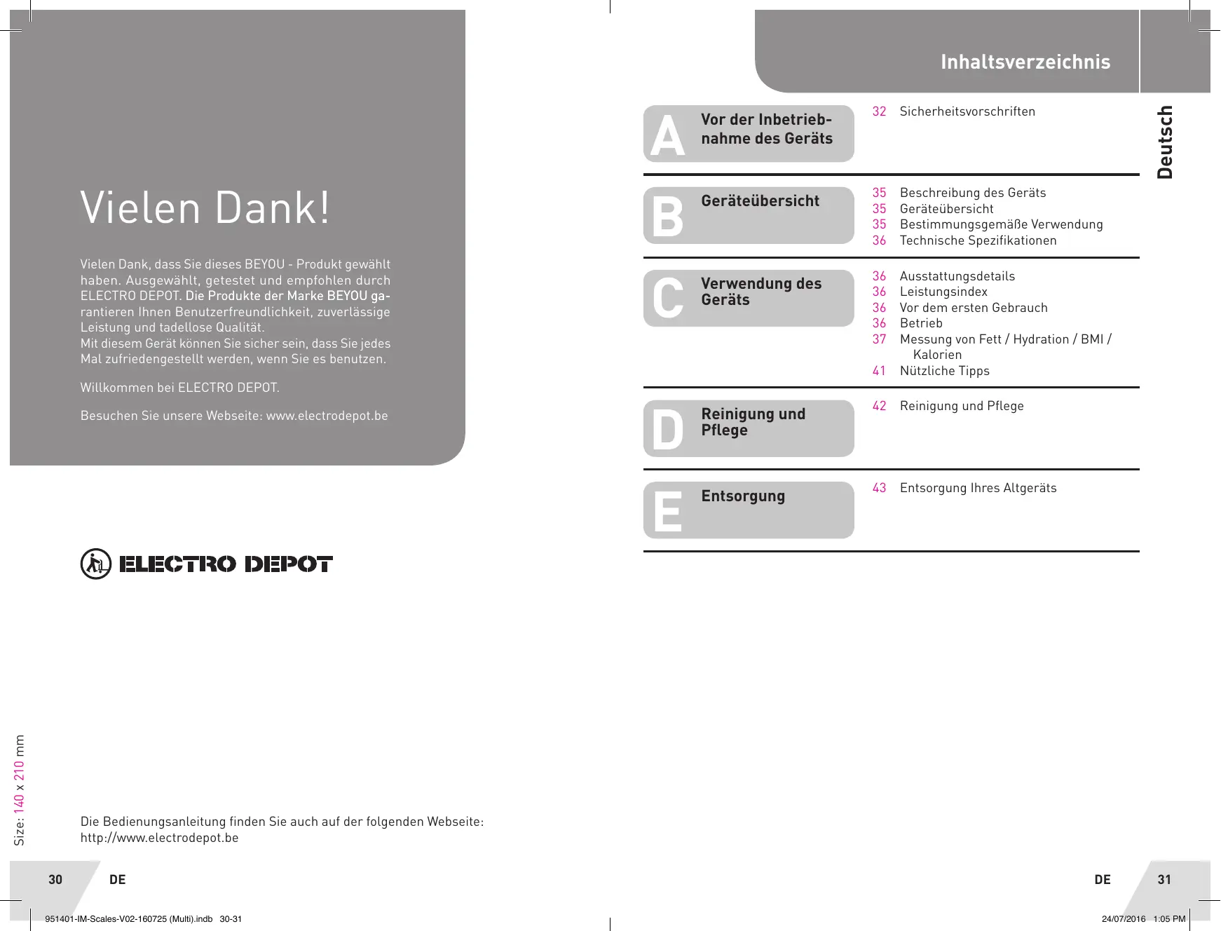 Laden Sie die Anleitung für Ihr Personenwaage kostenlos im PDF-Format! Finden Sie Ihr Handbuch EI3 - BE YOU und nehmen Sie Ihr elektronisches Gerät wieder in die Hand. Auf dieser Seite sind alle Dokumente veröffentlicht, die für die Verwendung Ihres Geräts notwendig sind. EI3 von der Marke BE YOU.