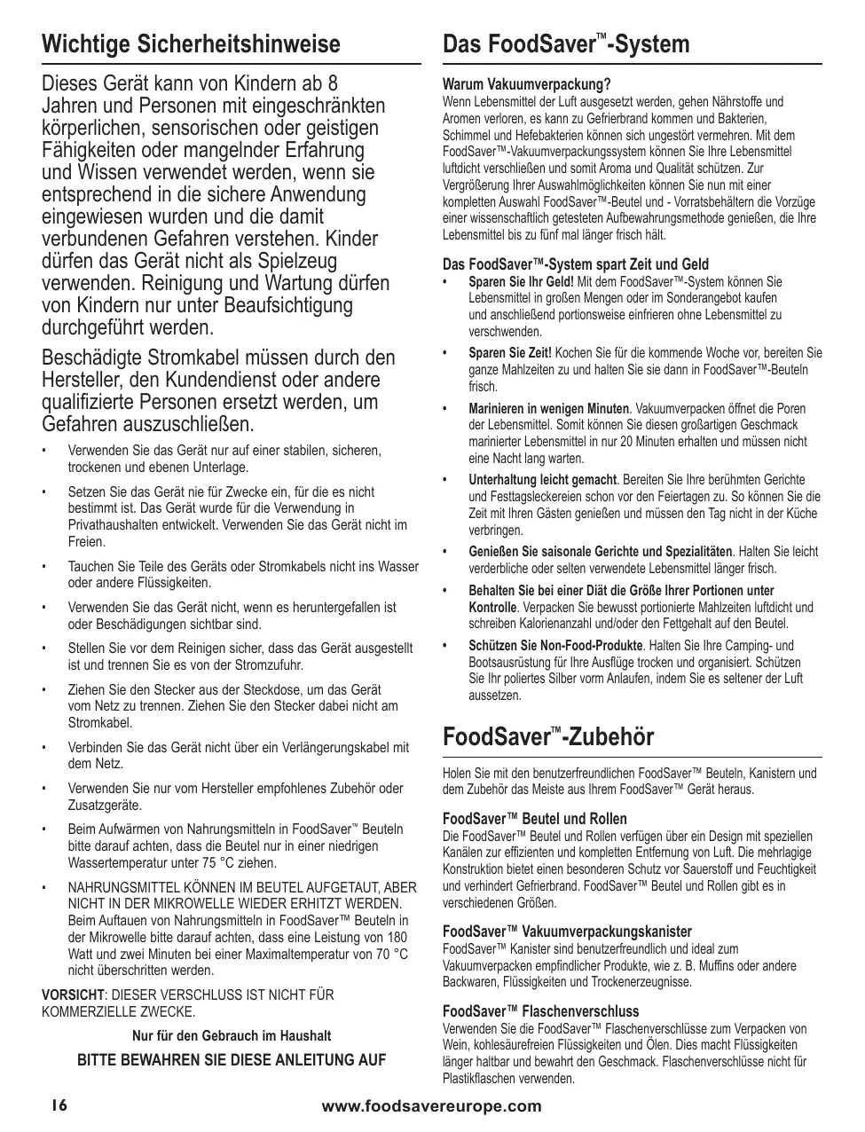 Finden Sie kostenlos die Bedienungsanleitung des Geräts FFS013X FOOD SAVER als PDF.