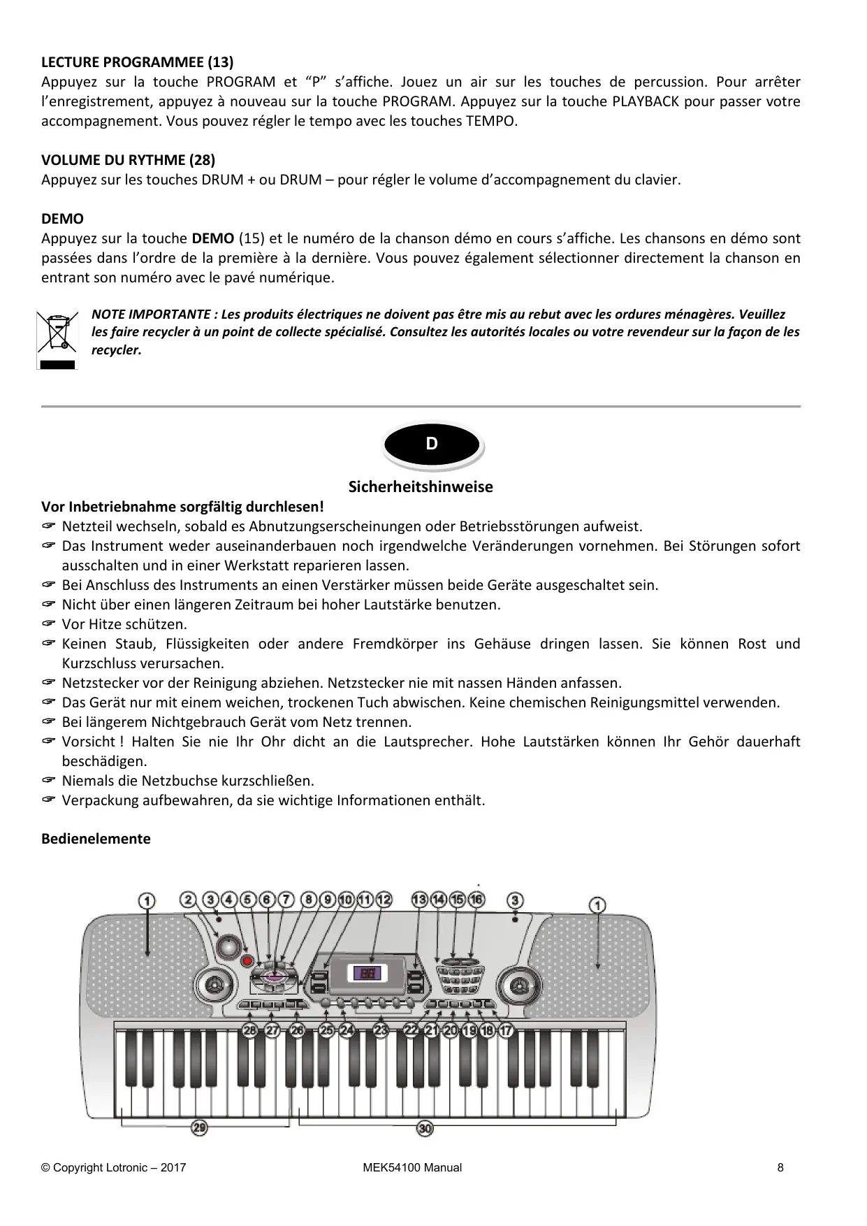 © Copyright Lotronic — 2017 MEK54100 Manual 8
