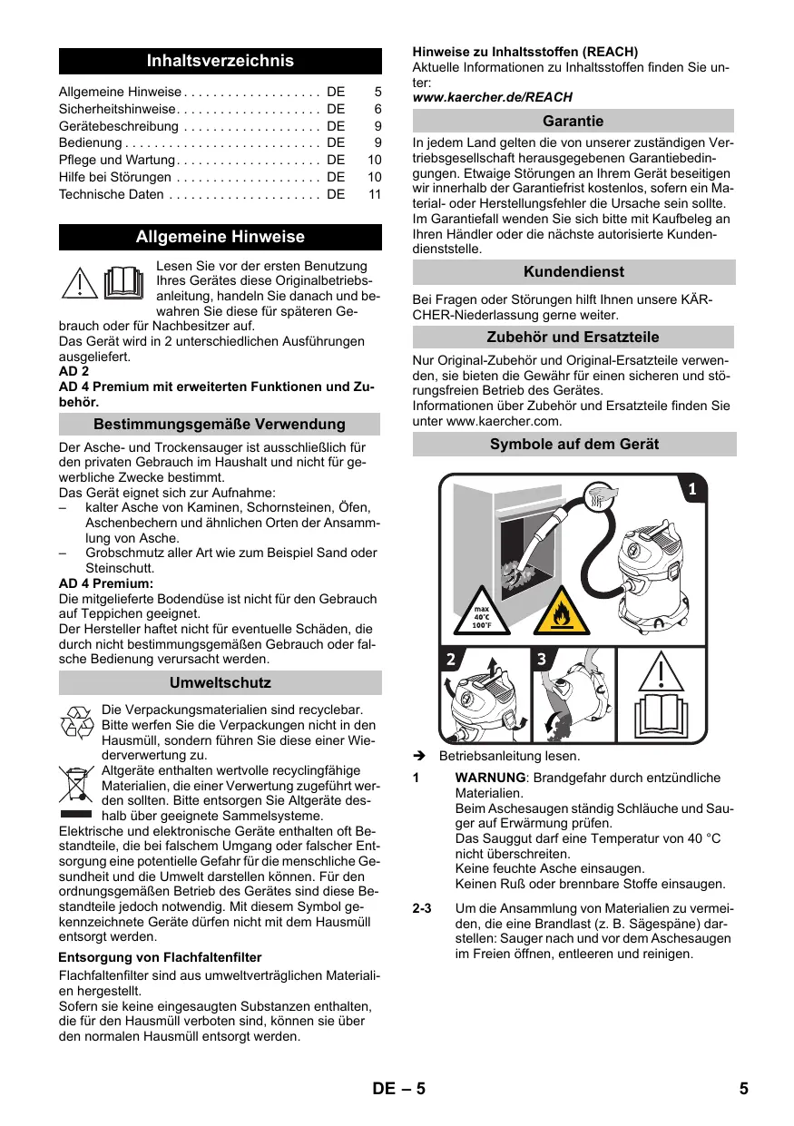 AD2 - Aspirateur à cendres KARCHER - Kostenlose Bedienungsanleitung
