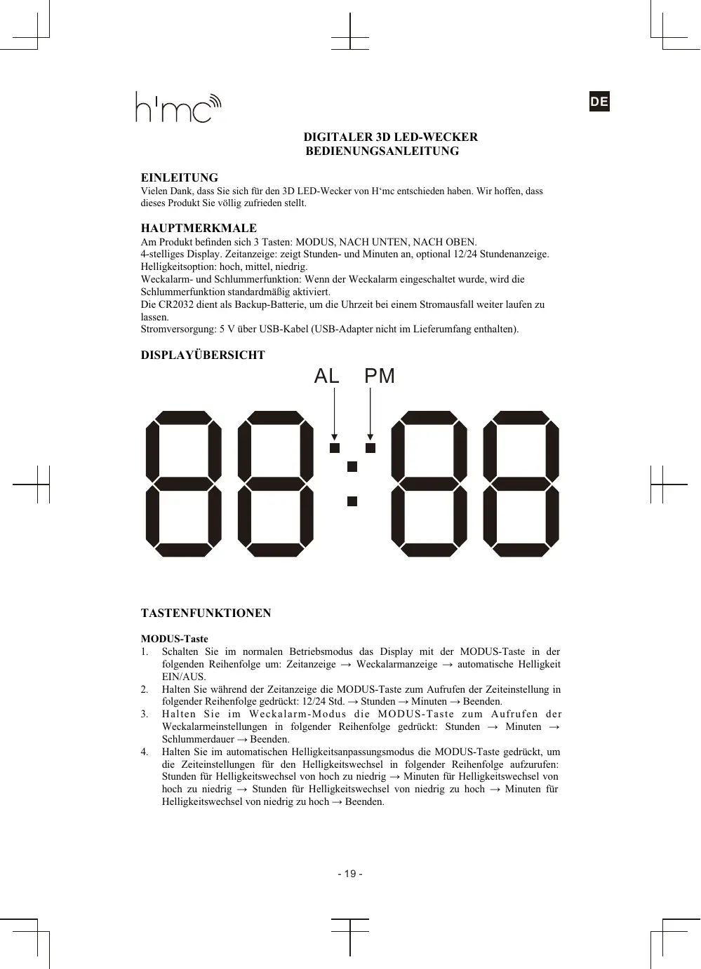 BEDIENUNGSANLEITUNG HMC LEDCLBK ONEARZ