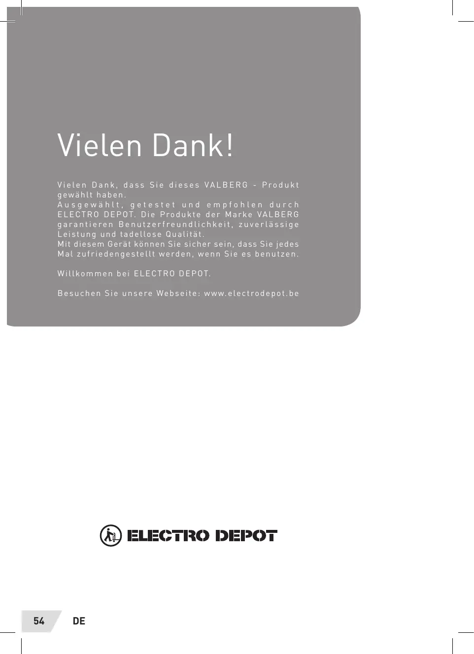 AU et und empfohlen durch ELECTRO DEPOT. Die Produkte der Marke VALBERG garantieren Benutzerfreundlichkeit, zuverlässige Leistung und tadellose Qualität.