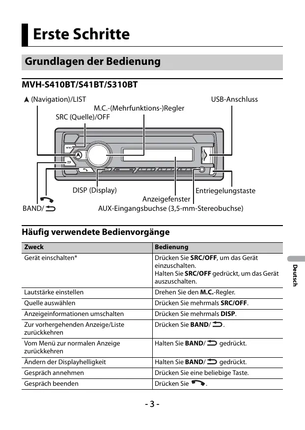 BEDIENUNGSANLEITUNG MVH-S410BT PIONEER