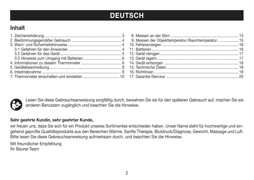 FT85 - Thermometer BEURER - Kostenlose Bedienungsanleitung