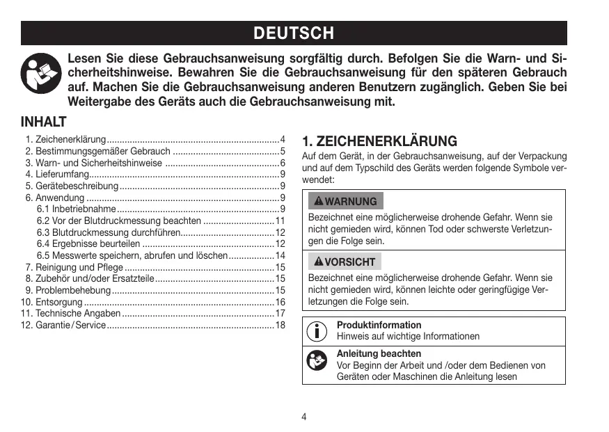 11. Caractéristiques techniques 12. Garantie/maintenance Lire le mode d'emploi avant de commencer le travail et/ou de faire fonctionner les appareils ou les machines