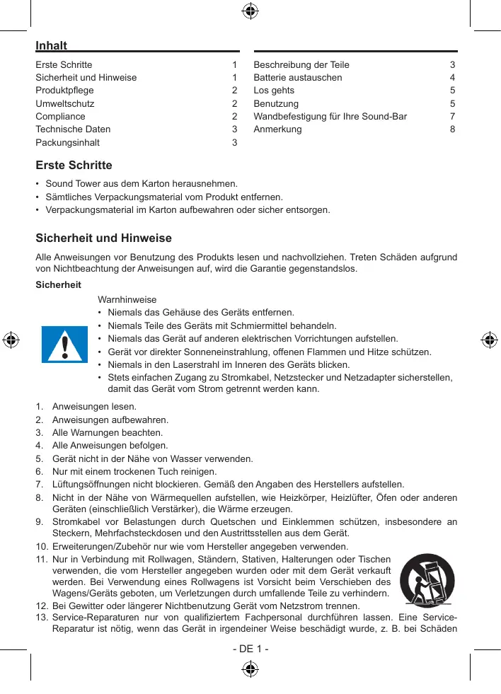 Laden Sie die Anleitung für Ihr Soundbar kostenlos im PDF-Format! Finden Sie Ihr Handbuch SB100BT - THOMSON und nehmen Sie Ihr elektronisches Gerät wieder in die Hand. Auf dieser Seite sind alle Dokumente veröffentlicht, die für die Verwendung Ihres Geräts notwendig sind. SB100BT von der Marke THOMSON.