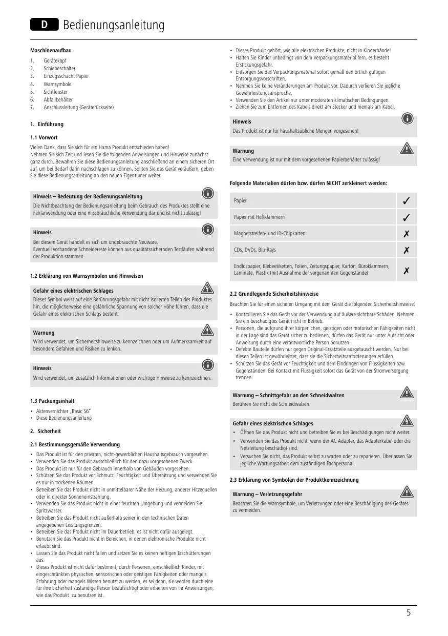 Destructeur de documents - Fournitures de bureau HAMA - Kostenlose Bedienungsanleitung