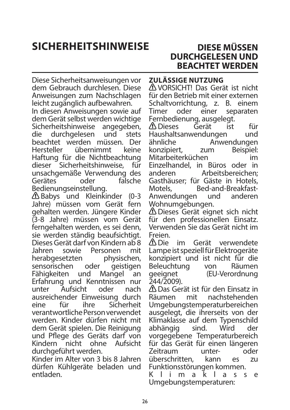 être respectées à tout moment. Le fabricant décline toute responsabilité en cas de non- respect des présentes consignes de sécurité, pour une utilisation inadaptée de l'appareil un ou réglage incorrect des commandes. 4 Les enfants en bas âge (0-3 ans) doivent être tenus à l'écart de l'appareil. Les jeunes enfants (3-8 ans) doivent rester éloignés de l'appareil sauf s'ils sont surveillés en continu. Les enfants à partir de 8 ans et les personnes présentant des capacités physiques, sensorielles ou mentales réduites ou un manque d'expérience et de connaissances peuvent utiliser cet appareil uniquement s'ils sont surveillés ou ont reçu des instructions sur l'utilisation en toute sécurité et s'ils comprennent les risques impliqués. Les enfants